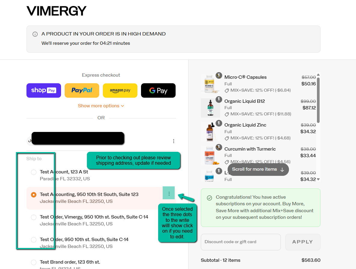 How do I view the Shipping Address prior to checkout?