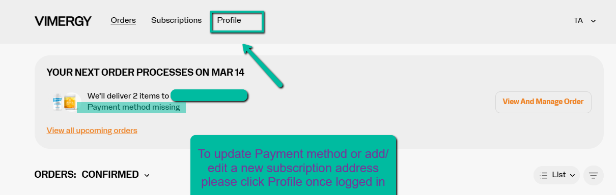 To update or add a payment method for a subscription account, please log in to the Vimergy website.